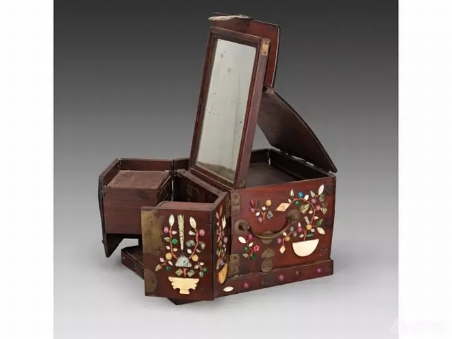 梳妝打扮是上至太后妃嬪,下至小家碧玉都喜愛的一種本能。而作為皇室,太后、妃嬪們所用的器物又更高端的多。北齊的胡太后,讓沙門靈昭,制造了七寶鏡臺,三十六個門戶各有一婦人,手中各自拿著鎖匙,只要輕碰其中一個門戶,這三十六戶一時全都自行關閉;若抽出其中一關的鎖匙,那么其余諸門,盡皆開啟,婦人都出現戶前站立。唐朝的馬登封也曾為皇后制妝臺,進退、開合全自動,都不須人力,巾櫛(梳篦的總稱)、香粉,依次遞送、循序進獻。看見的人,都認為是鬼斧神工。